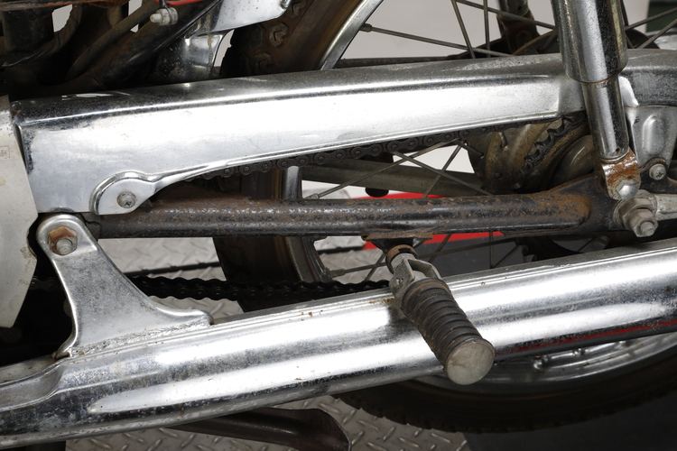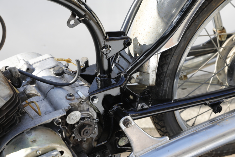 フレームやスイングアームなど単色で塗装された部品の場合、目立つサビをサンドペーパーで擦ってから缶スプレーでペイントするだけで見た目がグッと改善します。