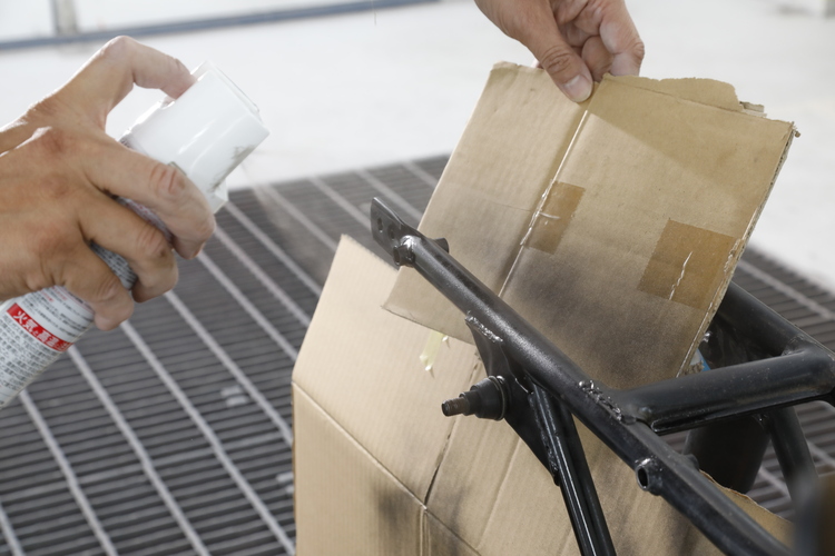 缶スプレーは一度に厚く塗ると垂れやすいので、薄く重ね塗りを行う。