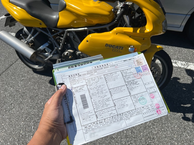 ちなみに車検切れに気づいたバイクの継続検査を行う際は、トランスポーターに積載して車検場に運搬するか、市町村役所で取得した仮ナンバーを装着して自走します。