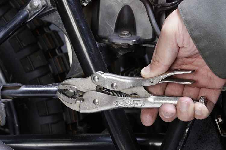 一般的なプライヤーできつく締まったボルトを回そうとすると、どうしてもグリップが開いてしまいますが、これならガッチリロックして回すことができます。