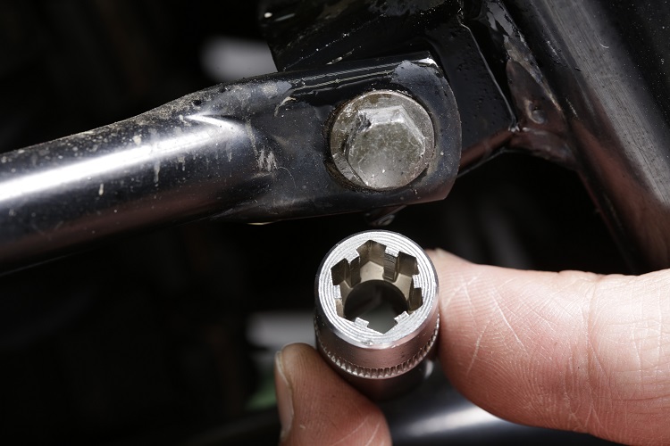 六角形の各辺から板が突き出したような特殊なソケットは、ナメたボルトに食い込ませるようにして使用する。