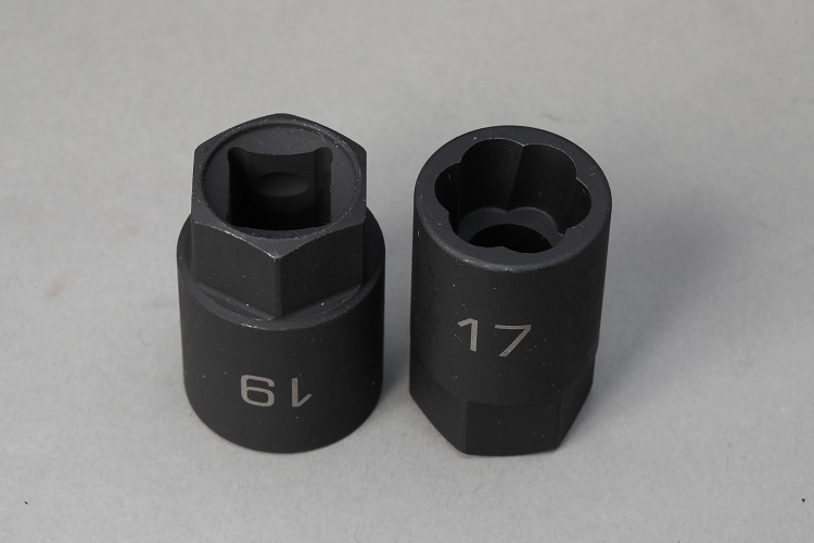開口部がボルトに食い込むようらせん形状にデザインされたソケットもある。(右)