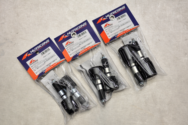 ハリケーンのグリップエンドは重さ別で3種類ラインナップ。