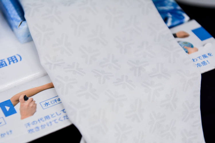 表面にプリントされたこの模様が涼しさを生み出しているヒミツで、汗に反応して持続的に涼しさを感じさせる冷感プリントというもの。