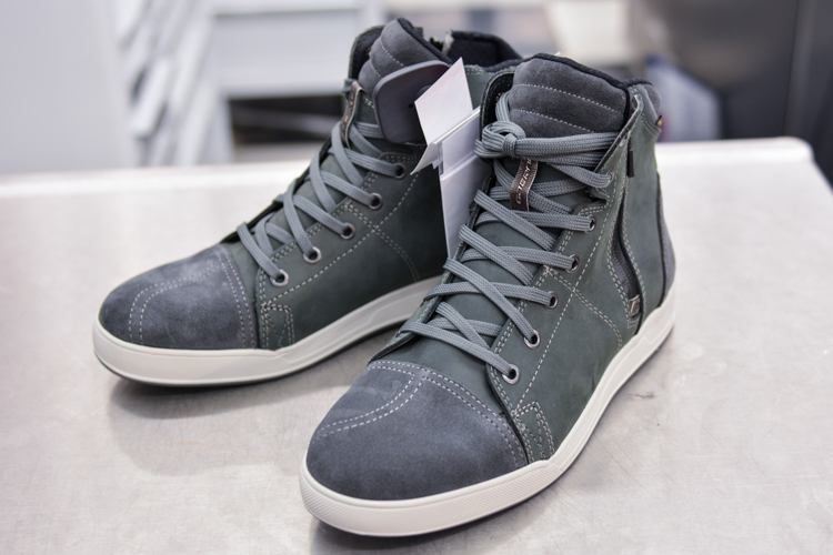 一見バイク用には見えないほどカジュアルなので場所を選ばず履くことができます。