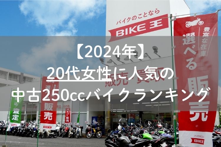 そこで本記事では、2024年1月1日~12月31日の期間中に20代の女性ライダーがバイク王で購入した中古250ccバイクをランキング形式で紹介します!