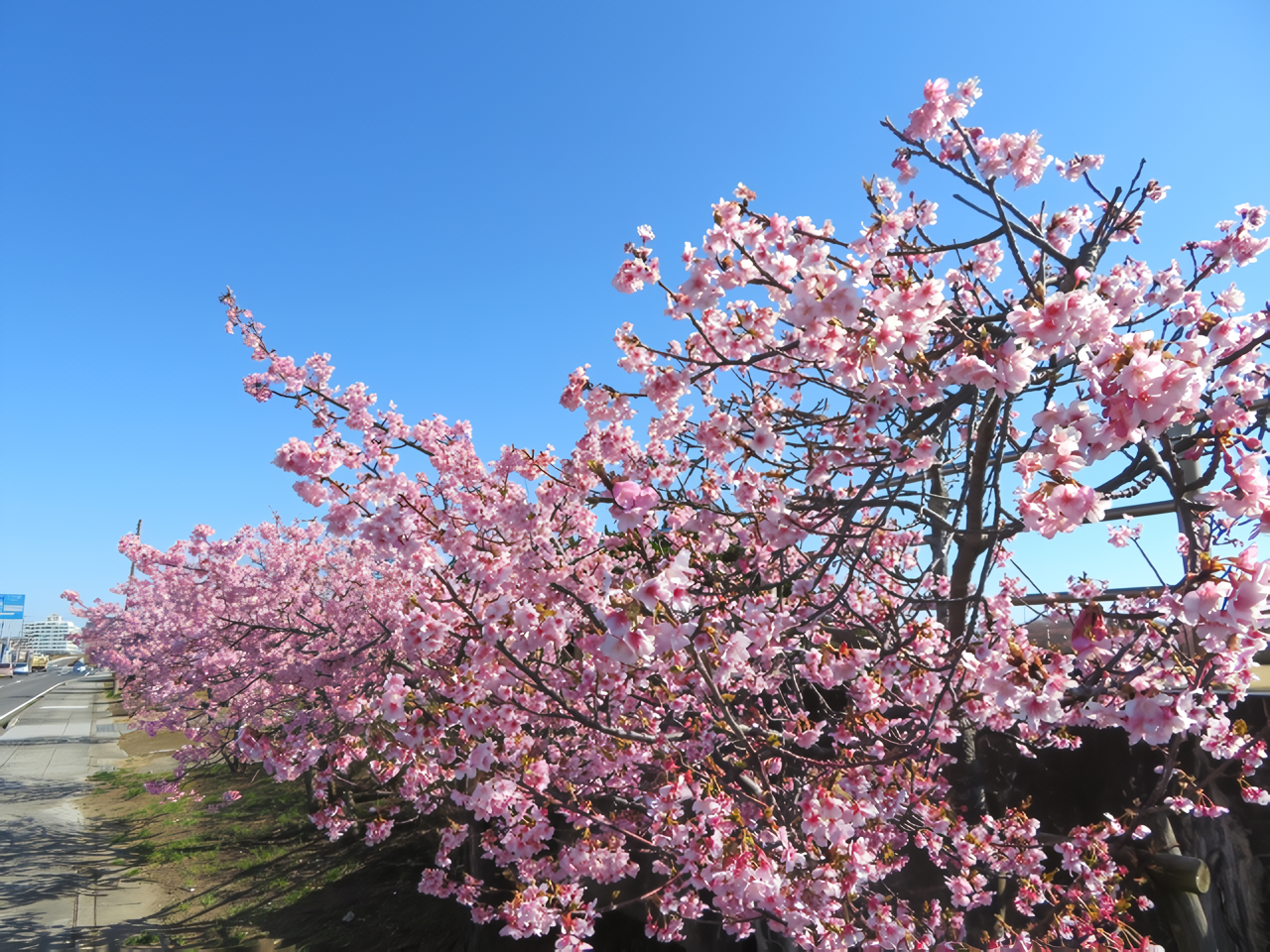 出典:photo AC九十九里の潮風を感じながら走れる県道30号線沿いに、約300~500本の河津桜が約2kmにわたって並びます。2月中旬からは「白子温泉桜まつり(2026年は2月21日~3月8日)」が開催され、夜にはライトアップも実施。