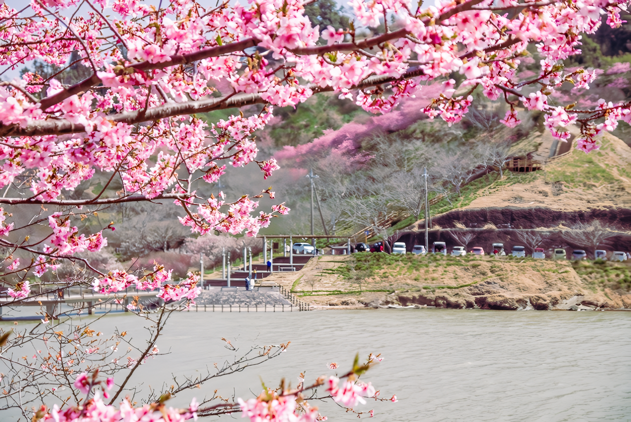 出典:photo AC房総半島の「早咲きの聖地」として知られる鋸南町にある公園です。ダム湖を囲むように約400本の河津桜(現地では頼朝桜と呼ばれます)が一斉に開花します。