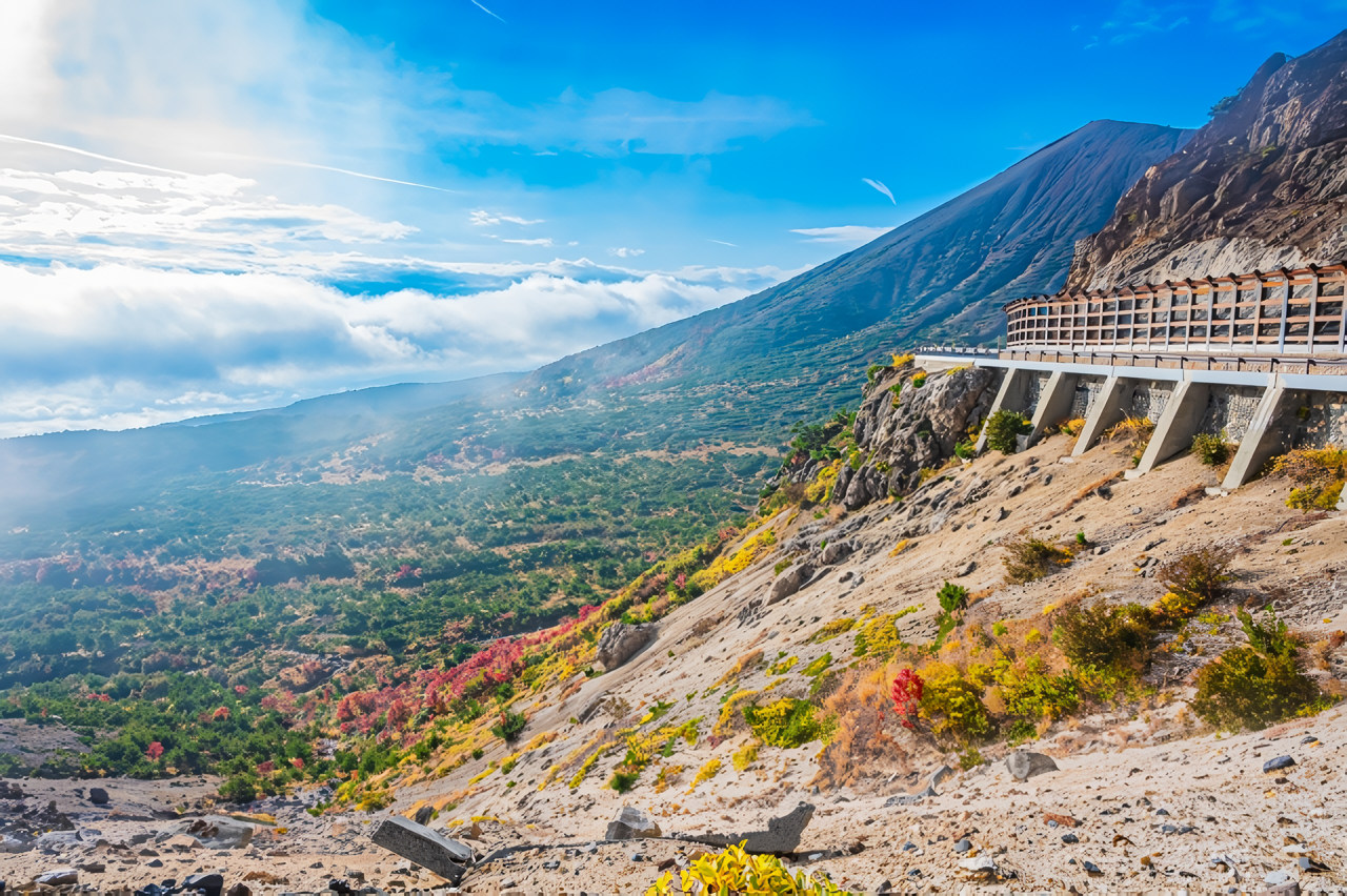 白根山周辺のダイナミックな火山地形や、渋峠から見下ろす芳ヶ平湿原の絶景はまさに圧巻。空に向かって登っていくような爽快感があり、標高ごとに移り変わる景色の変化を楽しみながら、貴重なスカイクルーズを堪能できます。