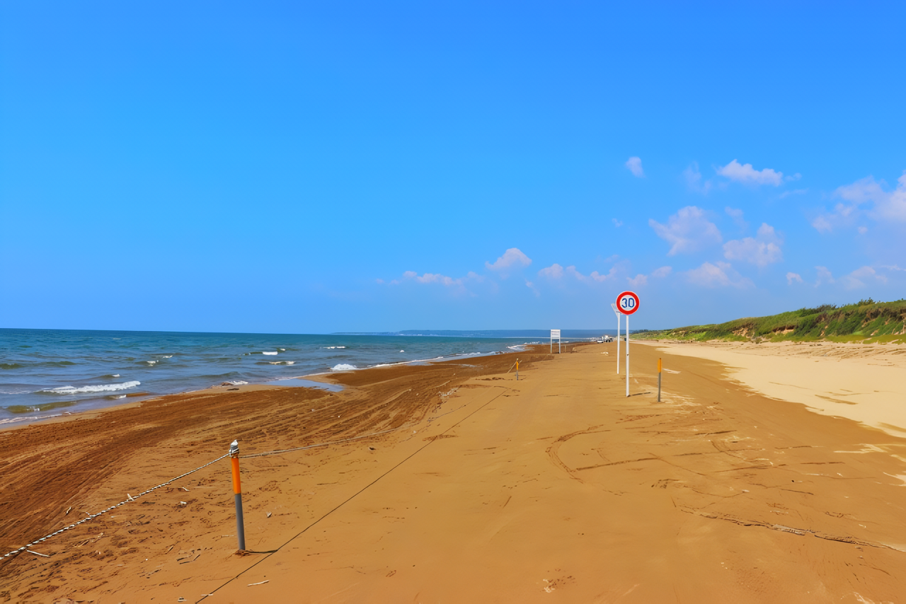 出典:Photo AC日本で唯一、波打ち際の砂浜を走行できる約8kmの観光道路です。粒子の細かい砂が海水を含んで固く締まっているため、一般的な舗装路と同じような感覚で走れるのが最大の特徴です。