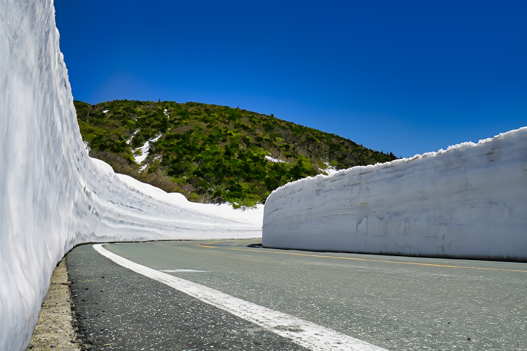 東北を代表するもう一つの名道、八幡平アスピーテラインもこの時期に開通します。こちらも「雪の回廊」で有名ですが、その長さは日本最大級。場所によっては数階建てのビルに匹敵するほどの高さになる雪壁の中を突き進む体験ができます。岩手側と秋田側で表情を変える景色を楽しみながら、東北の春の息吹をいち早く感じることができる、北の大地への入り口です。
