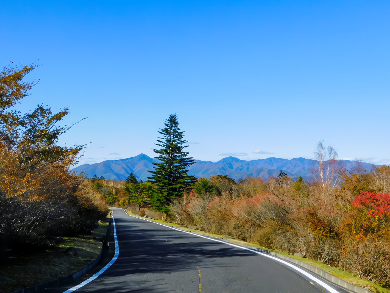 中禅寺湖の南岸を走り、半月山駐車場へと至る行き止まりの観光道路です。標高を上げるごとに眼下に広がる中禅寺湖の青さと、男体山の雄大な姿がセットで楽しめるのが魅力。終点の駐車場からは、足尾銅山方面の山々も一望でき、空に浮いているような感覚を味わえます。距離は短めですが、奥日光の自然を凝縮したような濃い景色を楽しめる、満足度の高いスポットです。