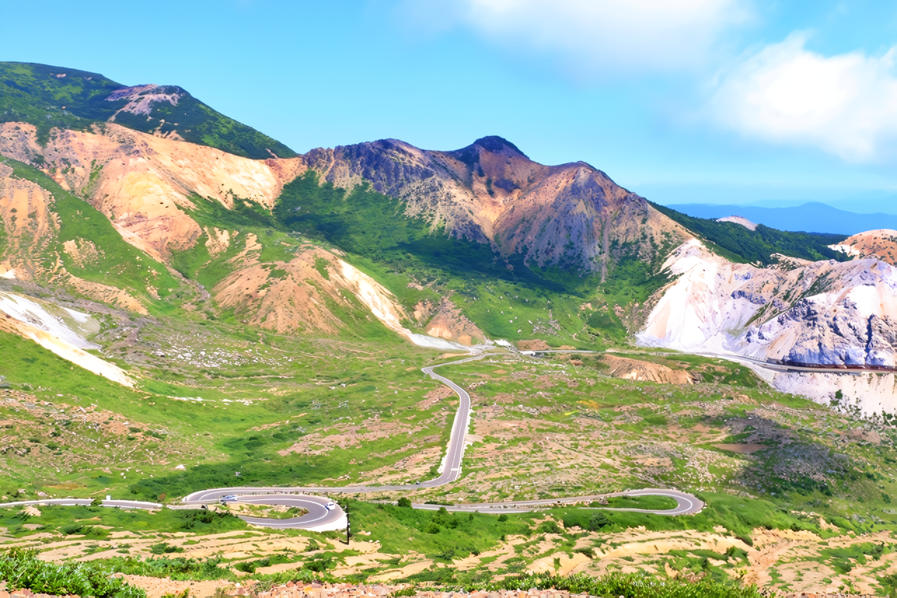 春先は残雪と火山特有の地肌のコントラストが美しく、非日常のツーリングを体験できます。火山ガスの濃度によって通行規制がかかる場合があるため、事前に最新情報の確認を忘れずに。