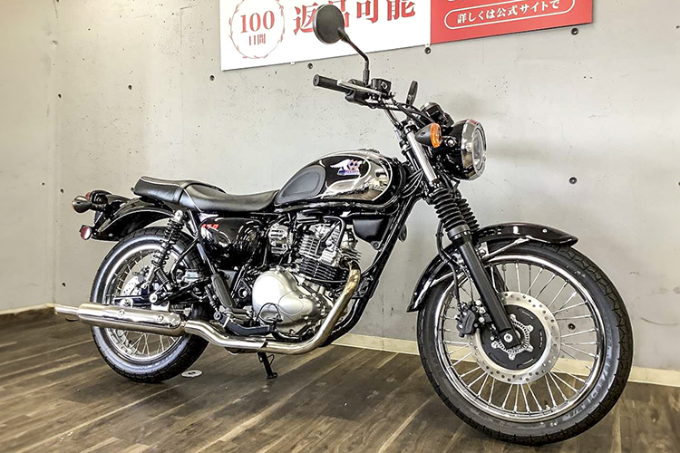 W230はカワサキの往年の名車でもあるWシリーズのイメージを受け継ぎ、前後スポークホイールでアナログ式2連メーターを装備。