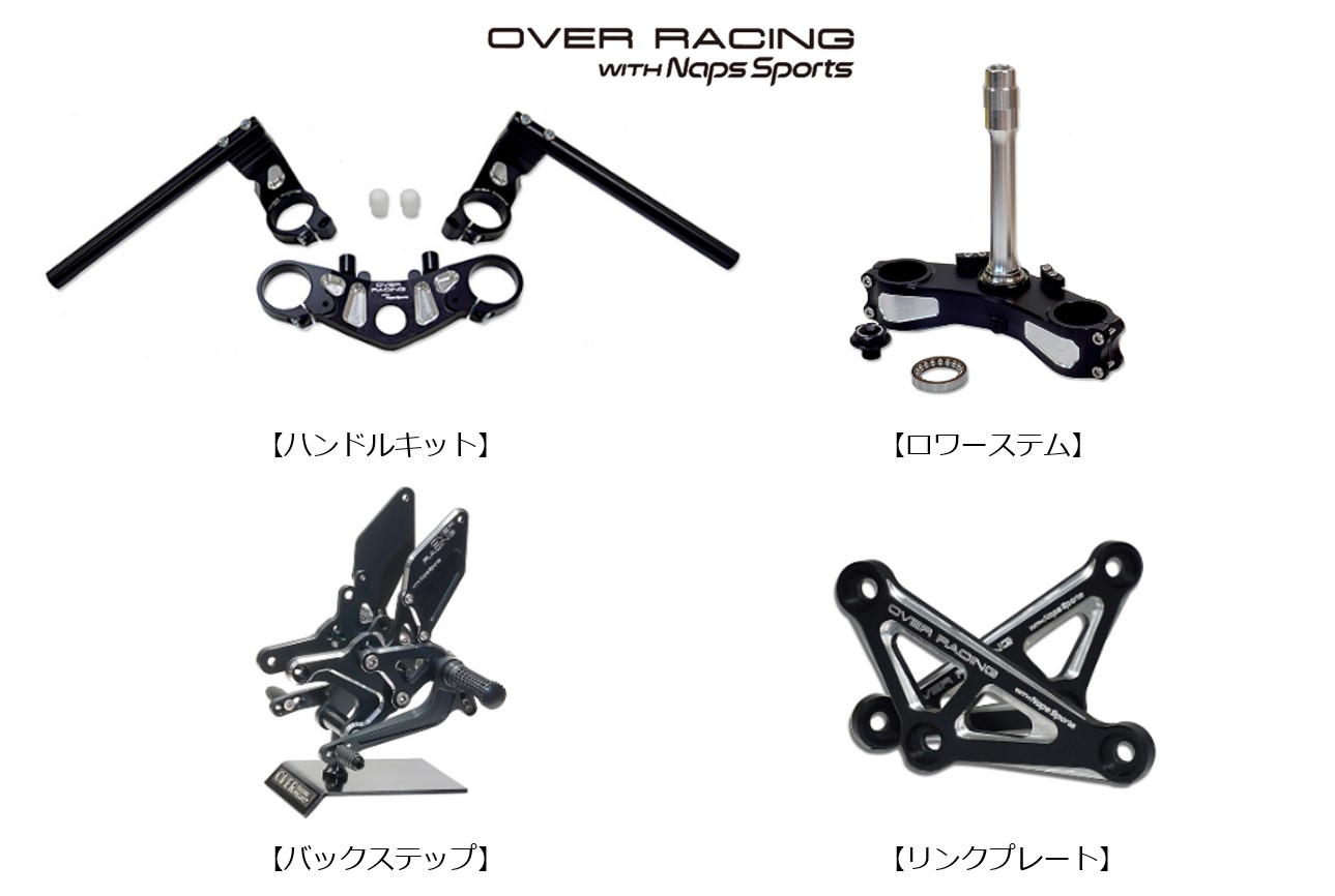 ラインナップは、ハンドルキット、ロワーステム、バックステップ、リンクプレートの4点。オーヴァーレーシングの「機能美」を追求したカスタムパーツは、見た目の美しさだけでなく、軽量化や操作性向上、車体姿勢の最適化を実現します。