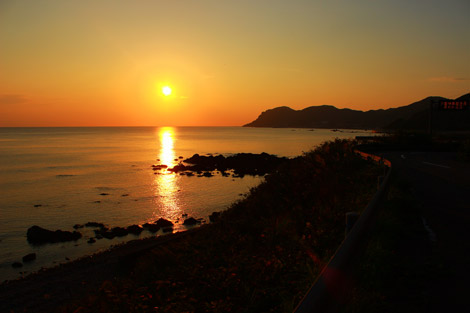 特に美しい夕陽が堪能できる事でも有名な竜泊ライン。夕闇が海を覆うにつれ見えてくる、漁船の漁火も幻想的な光景だ。