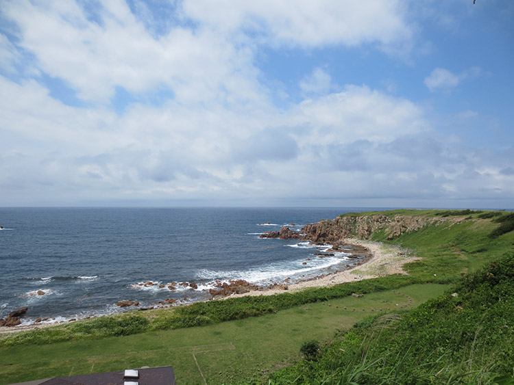 能代市より北は2車線幅広の道が続く。海岸は目前。荒々しい日本海特有の海岸線と共に走る爽快な旅路だ。