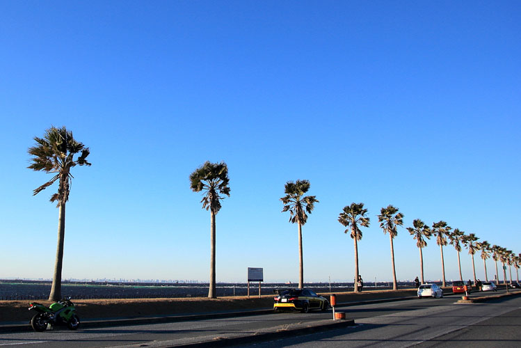 シュロの木が林立する風景がまるでカリフォルシアのよう!…という事から何時しか“千葉フォルニア”と呼ばれだし人気になったスポット。