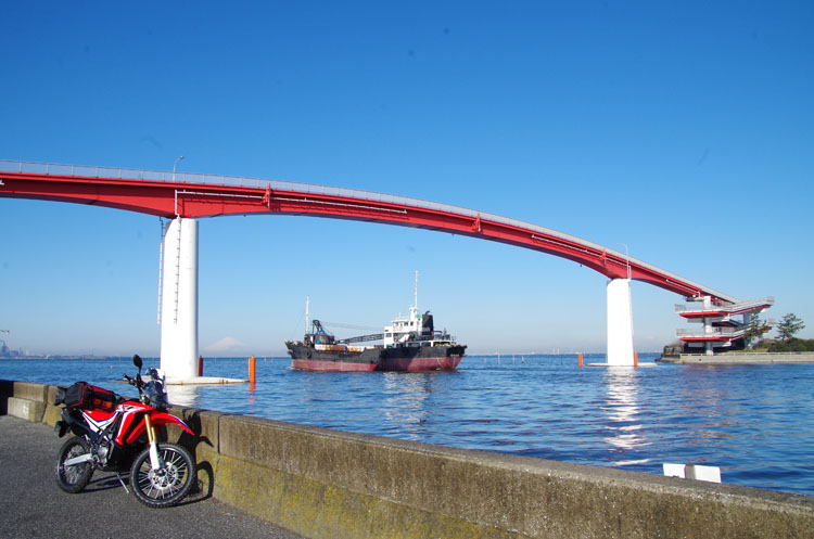 潮干狩り場のある中の島への連絡橋。ドラマ“木更津キャッツアイ”の舞台にもなった人道橋だ。