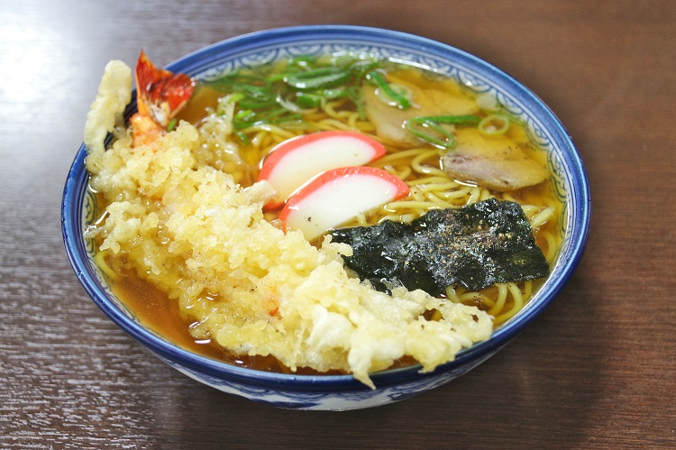 一見異色の組み合わせながら、懐かしい味わいの中華そばと海老天が凄まじく合うローカルフード。いわゆる郡上のソウルフードだ。人気店のため早めの訪問がお勧め。