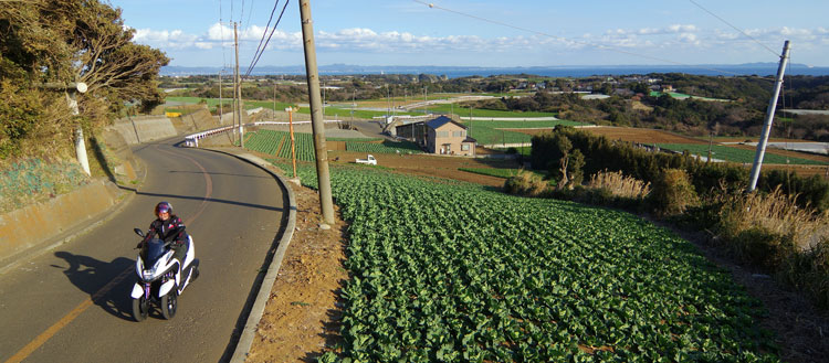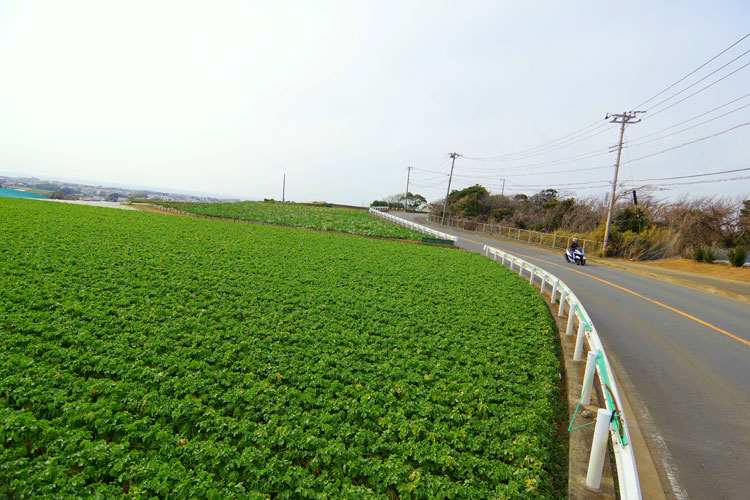 大きく抜けた展望や、豪快なアップダウンといった派手さは全くないが、一面に広がる大根畑の風景はどこか心落ち着く日本の原風景。ふらっと走りに行くにはちょうど良い。