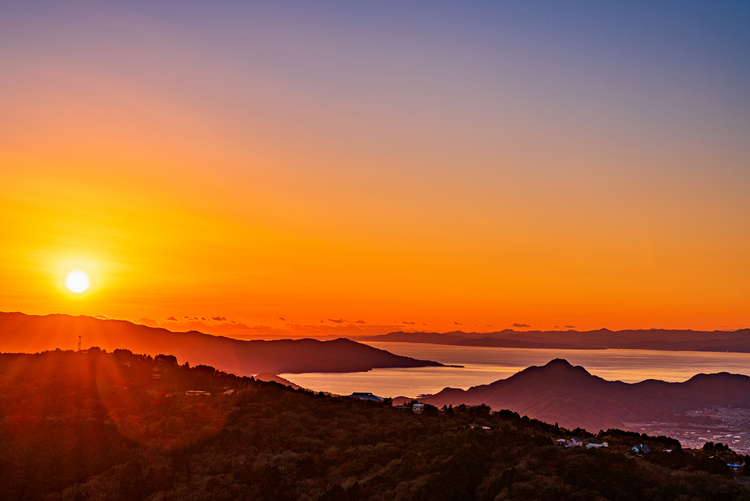 遥かなる水平線と共に地球の丸さを実感できる大スケールの夕陽を楽しもう。