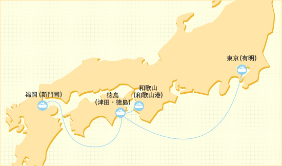 横浜方面より。首都高湾岸線、臨海副都心IC下車。約10分。南海フェリー(和歌山港のりば)