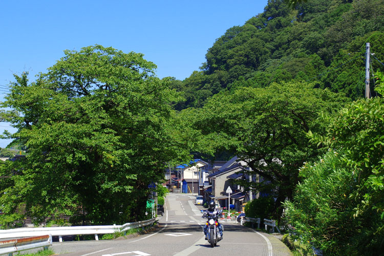 親不知海岸の富山県側は、北国街道市振の関。旧街道は先程とは一変し、近世感抜群の趣が漂う。日本海側の街道は旧跡も多く残されており、旅情抜群の雰囲気だ。