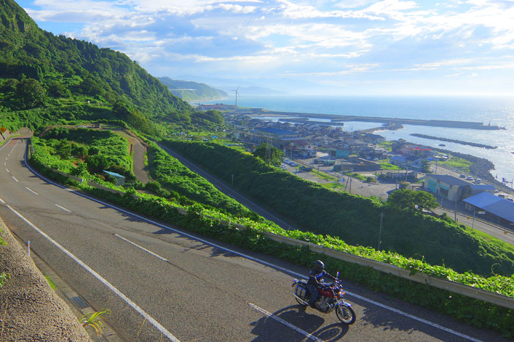 日本海側のツーリングでは、荒々しい海岸線が大変印象的だ。風景はもちろん、海鮮も大変美味。冬は雪の為、バイクでの旅は秋までしかチャンスがない。旬はまさに今だぞ!