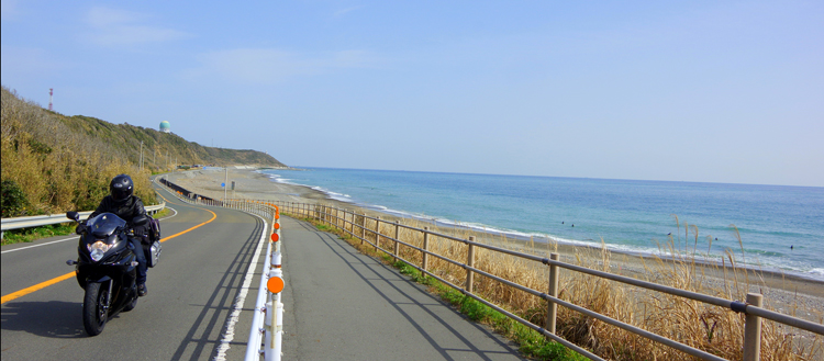 また、休日でも比較的空いており、渋滞や観光客に煩わされずにゆったりと走れるのも嬉しいポイント。道幅も広く信号も皆無。初心者の混在したマスツーリングにもお勧めのルートだと言えるだろう。ただ、このルートは観光道路ではなく、産業道路としての性格が強い道。御前崎港や浜岡原子力発電所を、東名高速と繋ぐ大基幹路の為、大型トレーラーの走行も珍しくない。大型車両の走行時は注意して走行しよう。
