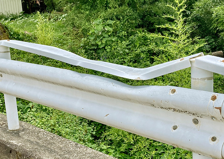 相手のいない単独転倒でもガードレールなどの道路構造物を壊すということはよくあることです。