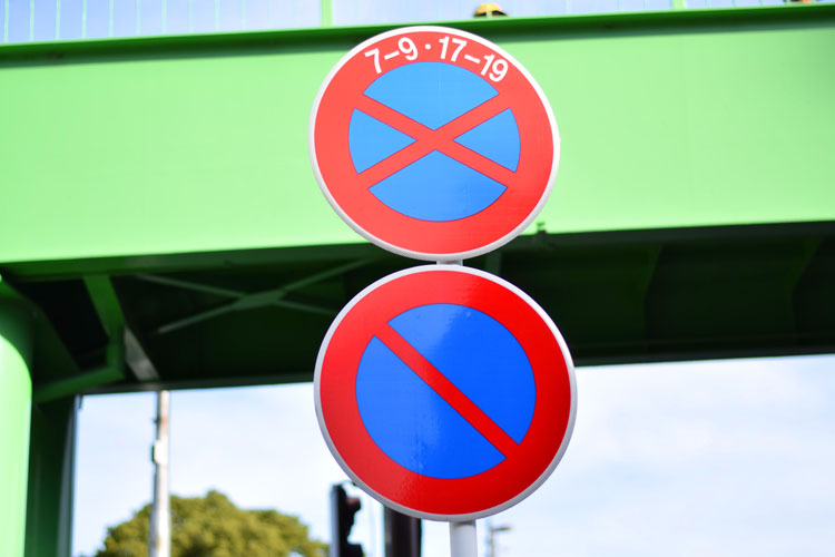 道路交通法などに従って、道路標識や道路標示を確認してからバイクを停めましょう。