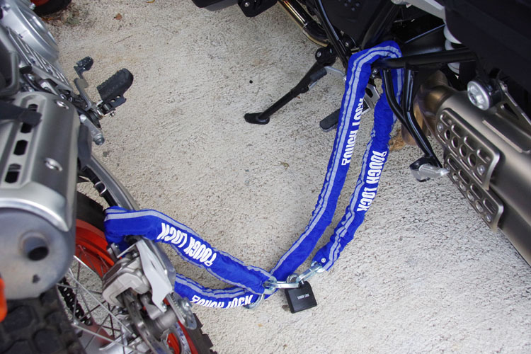 大型バイクは200~250kg程度ですが、引き起こし時にはタイヤ(支点)が動かないようにギヤを入れ、フロントブレーキにゴムバンドをはめる(フロントブレーキをかけた状態で固定)といったノウハウを知っていれば、必要最低限の力で引き起こすことができます。
