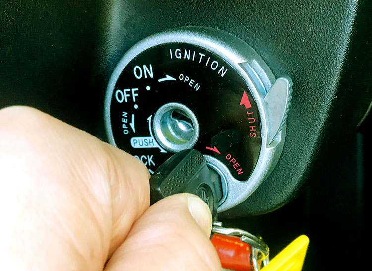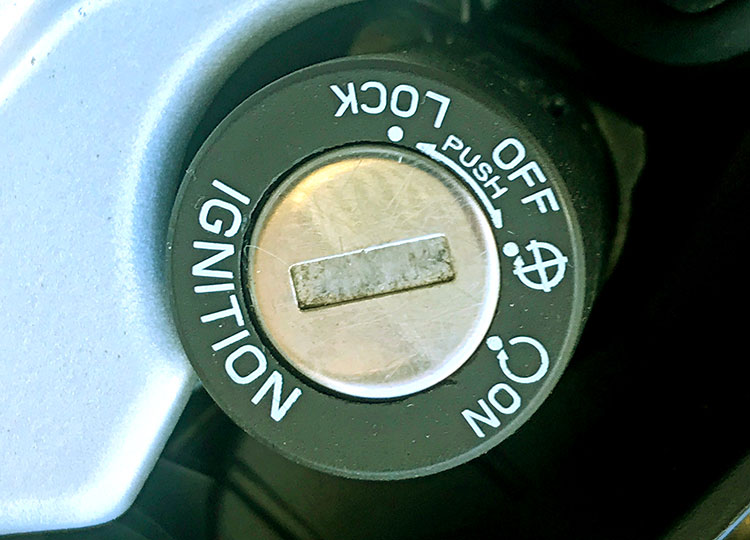 キーシリンダーにゴミが入ったり、キーが摩耗したりといった原因で、鍵穴に鍵を刺しても鍵がひっかかって回らず、ハンドルロックが解除できない、エンジンを始動できないというトラブルも起こります。