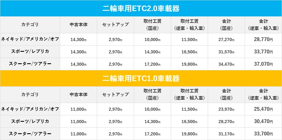 | ◆126cc以上のお客様 中古ETC(別途料金) |