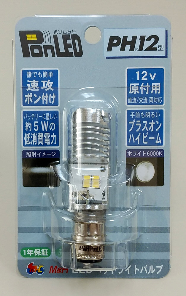 商品名 PonLED(ポンレッド)原付用LEDヘッドライトバルブ PH12型 M&H(マツシマ)