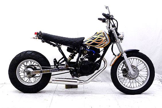 ※受注生産商品となりますのでご注文後2週間程度お時間をいただく商品となります。チョッパースタイル、アメリカンスタイル、カフェレーサースタイルにピッタリなマフラーです。エキパイ部分から全て交換する、フルエキゾーストタイプです。オールステンレス製でエキパイからサイレンサーまでバフ仕上げを施しています。エキパイ径45mm、サイレンサー径90mmの仕様で、バランスのとれた仕上がりなっています。性能面は、低中速を落とすことなく高回転までスムーズに回り扱いやすい設定になっています。サイレンサーはストレート構造ではなくフロント部にパンチングを施した作りになっていますので、音量は静かめに抑えられており近所迷惑になる事無く安心して走行できます。音質は心地よい重低音を実現しておりますので、ノーマルマフラーでは物足りない方にオススメです。無加工ボルトオンにて装着できますので、必要な工具があれば簡単に取り付けできます。(取り付けに必要なボルト類は全て付属しております。)ハードカスタムにも対応できるマフラーをお探しの方には、ピッタリの逸品です。