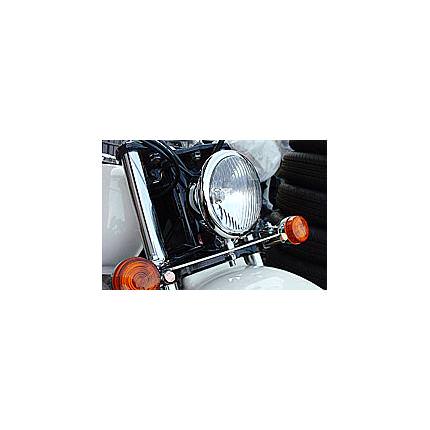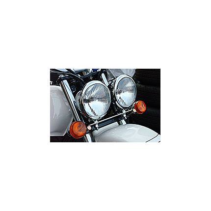 ・ステンレス製。フロントフォークアンダーブラケットと共締めするだけの簡単ボルトオン!ウインカーステーも付属しており、ノーマルでも社外品でも取り付けできます。(形状により取り付けできない社外品もあります)・上記の4.5インチまでのヘッドライトであれば、2灯取り付けも可能です。・(2灯仕様の場合の配線加工はお客様で施工していただきます。ご了承下さい。)