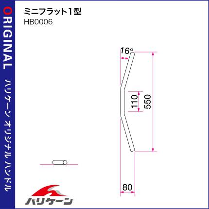 ミニフラット1型 ハンドル HURRICANE(ハリケーン) APE50(〜07年/8キャブ車)・APE100(〜12年ドラム車)(エイプ):HB0006C-01