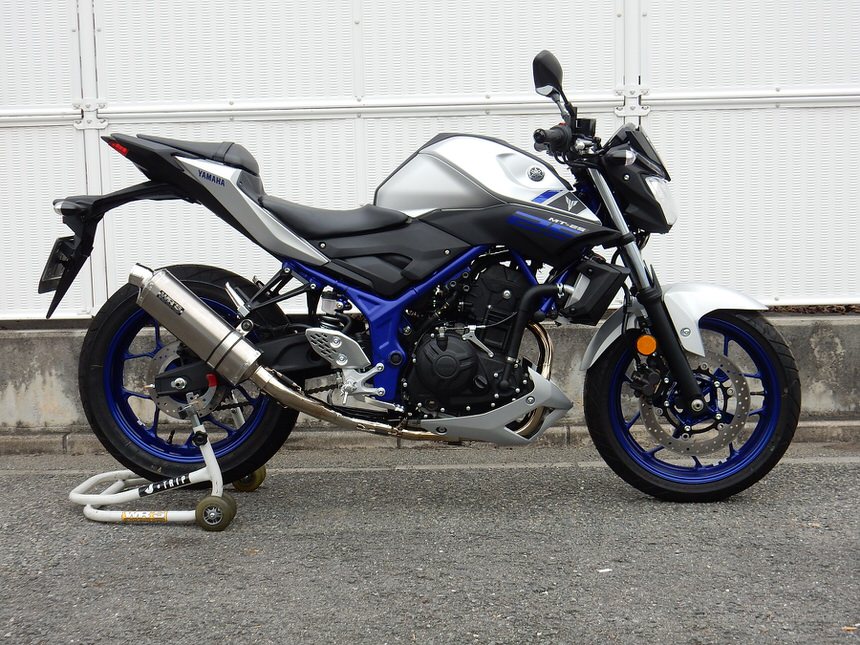 ※YZF-R3/MT-03には適合しておりません。ご注意ください。MT-25用フルエキゾースト(異型チタンオーバル)マフラーがラインナップに加わりました。アクセルレスポンスの適正化により低速域から高速域までノーマルをアップデートしてくれます。サイレンサーは完全ストレート構造。MT-25から放たれるパワーフィールを存分堪能していただけます。アップスタイルにチタンオーバルサイレンサーをレイアウトすることでスポーティーかつスタイリッシュな雰囲気を演出します。音量をしっかりクリアしつつ、低音の効いた存在感のあるツインらしい音質で走りの楽しさをさらに引き立てます。スリップオンとは一味違うダイレクトなパワーフィールを存分に堪能していただける商品です。MT-25装着データ近接騒音値:92dB。加速走行騒音:79dB。マフラー重量:3.97Kg(純正8Kg)。触媒付属。オイルフィルター交換可能。政府認証・JMCA認定。平成22年改定騒音規定値クリア。
