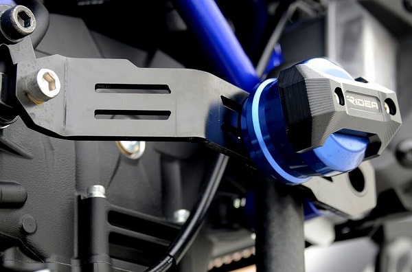 万が一の転倒時に衝撃を軽減し、車体などのダメージを和らげてくれます。高強度アルミニウム合金素材(A6061-T6)削り出し、カラーアルマイト仕上げの本体とヘッド部のみPOM(ポリオキシメチレン)を採用し、高いデザイン性と機能性を両立したスライダーです。転倒時等に破損する可能性があるアルミ部分とPOMカバーは単品で購入することが出来ます。車両への加工は不要です。