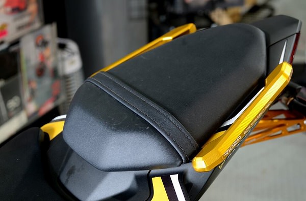 純正はシートベルトのみの為、グラブバー装着によりタンデム時の不安を解消できます。また、車両の取り回しが楽になります。高強度アルミニウム合金素材(A6061-T6)削り出しを使用し、表面の変色や腐食を防ぎ、耐摩耗性を向上させるアルマイト仕上げで美しい外観を長く保ちます。車両への加工は不要です。