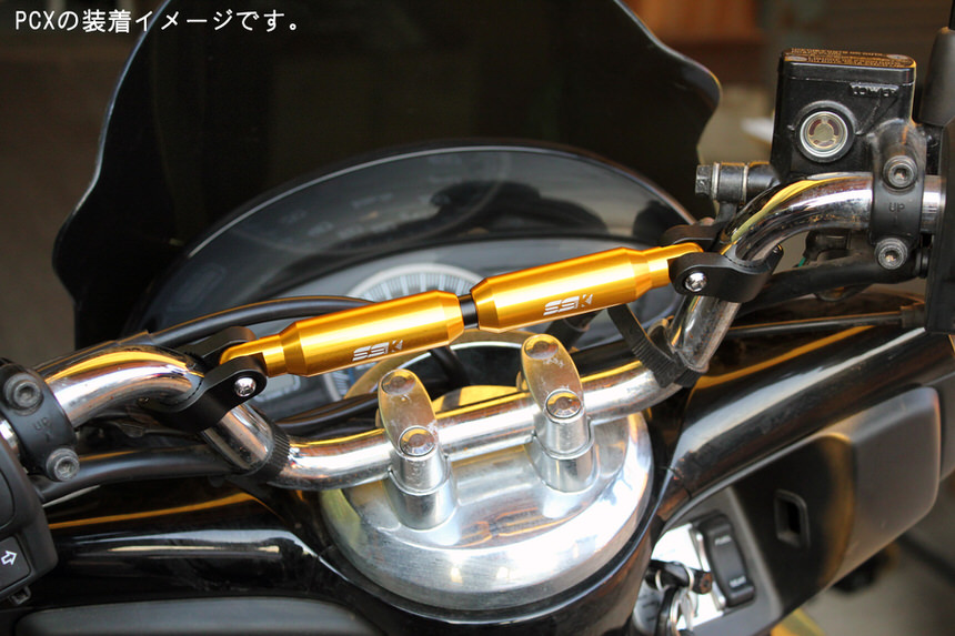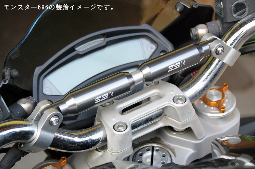 ※長さはクランプ時の長さとなります。※商品画像はイメージです、商品の仕様と異なる場合もあります。※製品の価格は改良の為、予告無く変更することがございます。アルミ製にカラーアルマイト処理を施し、高級感を実現。センターバーが22.2mmのハンドル径なので、ドリンクホルダーやETC取付ステーが装着可能。アジャスター式でセンターバーの長さが225mm〜330mmまで調節可能。(画像をご参照ください)クランプ部はヒンジ式で開閉するので、ハンドルにも簡単装着可能。ハンドル強度の向上だけでなく、ドレスアップパーツとしても効果的。