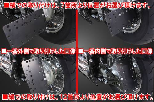※テールランプ及び、ライセンス灯は別売りとなりますのでご了承下さい。※ガレージT&F社サイドナンバーKITは取り付け位置にかなり自由度がございます。しかしながらテールランプの種類やフラットフェンダーKITと同時装着などによって取り付け位置が制限される場合がございます。【サイドナンバー本体の仕様】・素材:スチール製。ブラック仕上げ。【製品の特徴】・通常のサイドナンバーKITは、縦なら縦、横なら横にしか固定できませんが、このサイドナンバーKITは縦横どちらでも取り付け可能です。・ステーの角度調整や前後スライド調整も可能です。・専用ステー付きで簡単ボルトオンです。【別売りオプションパーツ】・サイドナンバーKITにテールランプを直接取り付けされるお客様は別売りのサイドナンバーキット専用テールランプをお選び下さい。・サイドナンバーKITにライセンス灯のみ取り付けし、フェンダーに直接テールランプを取り付けされるお客様は別売りライセンス灯及びテールランプ(テールランプは汎用品となります。フェンダーに穴明け加工などが必要です。)をお選び下さい。・ガレージT&F社フラットフェンダーKITと同時装着される場合はサイドナンバーオフセットKITを同時にお買い求め下さい。