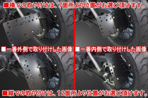 ※テールランプ及び、ライセンス灯は別売りとなりますのでご了承下さい。※ガレージT&F社サイドナンバーKITは取り付け位置にかなり自由度がございます。しかしながらテールランプの種類やフラットフェンダーKITと同時装着などによって取り付け位置が制限される場合がございます。【サイドナンバー本体の仕様】・素材:スチール製。ブラック仕上げ。【製品の特徴】・通常のサイドナンバーKITは、縦なら縦、横なら横にしか固定できませんが、このサイドナンバーKITは縦横どちらでも取り付け可能です。・ステーの角度調整や前後スライド調整も可能です。・簡単ボルトオンです。【別売りオプションパーツ】・サイドナンバーKITにテールランプを直接取り付けされるお客様は別売りのサイドナンバーキット専用テールランプをお選び下さい。・サイドナンバーKITにライセンス灯のみ取り付けし、フェンダーに直接テールランプを取り付けされるお客様は別売りライセンス灯及びテールランプ(テールランプは汎用品となります。フェンダーに穴明け加工などが必要です。)をお選び下さい。