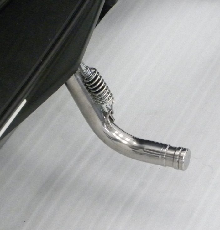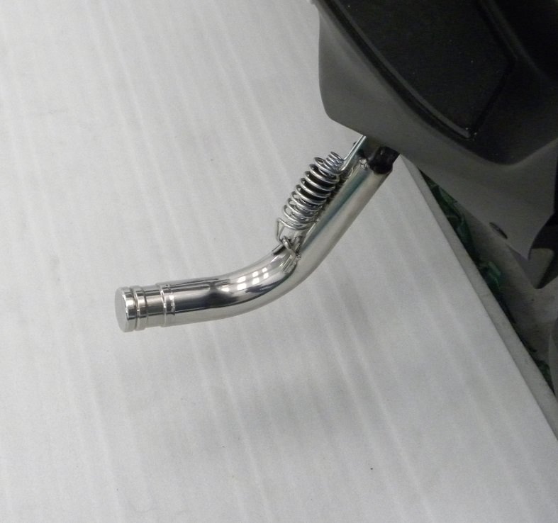 ※受注生産商品のためご注文後商品のお届けまで2週間程度お時間を頂戴いたします。ローダウンはスクーターカスタムの定番となっておりますが、その際にノーマルスタンドですと掛けた際に車体の傾きが足らずに、不安定な状態になってしまいます。ローダウンして車高を下げる場合には、同時にスタンドもローダウンに対応するものに交換することをオススメします。車体への取り付け部分は、粘りがあり破断しにくい「鉄」を採用し、バーの部分は錆に強い32mm径の極太、硬質ステンレスを採用しています。ステンレス部分にはバフ仕上げが施してあり、高級感の高い仕上がりとなっております。【0〜40mmのローダウン車両に使用可能】