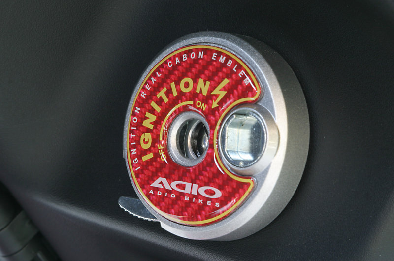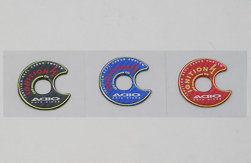 ※モデルによってはキーシリンダー形状が異なる場合がございます。形状をご確認ください。キーシリンダー、バイクに乗る時は必ずキーを差し込んで始動させる重要なパーツですが、シルバーの無機質なものです。このキーシリンダーに、貼るだけでファッショナブルになるエンブレムの発売です。本物カーボンシートの上からソフトタイプの樹脂を被せた、柔軟性のあるエンブレムシールです。手触りもソフトで傷も付きにくくなっています。黒、青、赤の3種類の設定で、お好みやボディカラーと合わせて選べます。素材には、本物カーボンシートを使用しているために、カーボンの織り目がとってもレーシーです。本物カーボンシートの上に、ソフトタイプのクリアー樹脂を被せ、高級感もあります。イグニッションマークと、ADIOのロゴ入り。黄色の縁取り線も入っていて、シャープなデザインとなっています。素材には、本物カーボンシートを使用しているために、カーボンの織り目がとってもレーシーです。本物カーボンシートの上に、ソフトタイプのクリアー樹脂を被せ、高級感もあります。イグニッションマークと、ADIOのロゴ入り。黄色の縁取り線も入っていて、シャープなデザインとなっています。