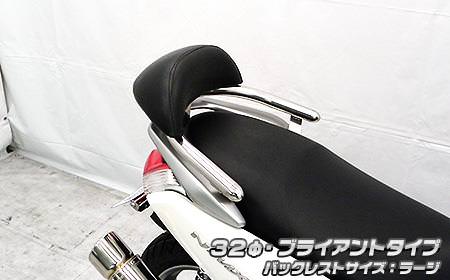 ※受注生産のため、商品のお届けまで2週間程度お時間をいただきます。ご了承くださいませ。今、ローダウンはスクーターカスタムの定番となっておりますが、そのローフォルムに合わせて出来るだけ車体全体を低く見せるために、車体との一体感を追求したタンデムバーを開発いたしました!車体に沿うように低くデザインされているのでボディラインにフィットし、かつ極太の32mm径のステンレスパイプを採用しましたので、存在感、目立ち度は抜群です!仕上げはバフ掛けを施していますので、高級感タップリでドレスアップには最適の逸品です!バーが極太なので、パッセンジャーが握りやすく力を入れやすいので、安全性も高くなっております。ユーザー様により便利でお手軽に装着して頂くため、大型バックレストをウイルズウィンオリジナルで製作しました。従来の価格より大幅に値下げする事に成功しましたので、よりお求めやすくなりました。オリジナルバックレストは型から興して製作していますので、見た目も良く耐久性に優れるしっかりとした作りになっています。材質は、耐久性、耐腐食性の高いオールステンレス製です。仕上げはバフ掛けを施していますので、高級感タップリでドレスアップにも最適の逸品です!こちらの商品のバックレストの仕様はラージサイズです。