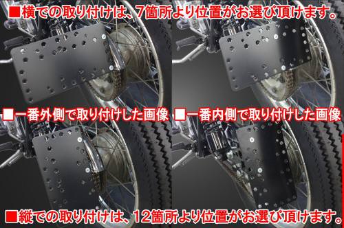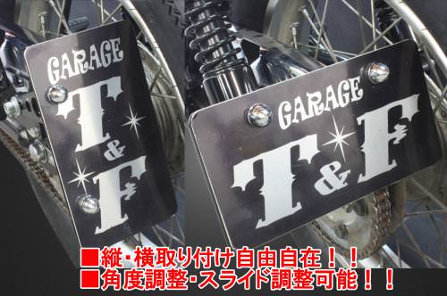 ※テールランプ及び、ライセンス灯は別売りとなりますのでご了承下さい。・ガレージT&F社サイドナンバーKITは取り付け位置にかなり自由度がございます。しかしながらテールランプの種類よって取り付け位置が制限される場合がございます。サイドナンバー本体の仕様・素材:スチール製。ブラック仕上げ。【製品の特徴】・通常のサイドナンバーKITは、縦なら縦、横なら横にしか固定できませんが、このサイドナンバーKITは縦横どちらでも取り付け可能です。・ステーの角度調整や前後スライド調整も可能です。・簡単ボルトオンです。オプションパーツ・サイドナンバーKITにテールランプを直接取り付けされるお客様は別途テールランプをお選び下さい。・サイドナンバーKITにライセンス灯のみ取り付けし、フェンダーに直接テールランプを取り付けされるお客様は別途ライセンス灯及びテールランプ(テールランプは汎用品となります。フェンダーに穴明け加工などが必要です。)をお選び下さい。