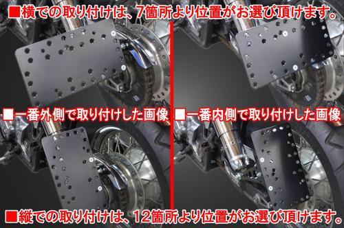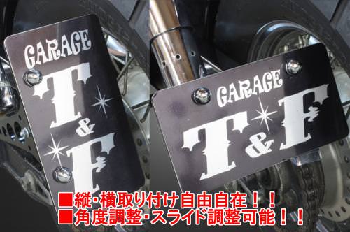 ※テールランプ及び、ライセンス灯は別売りとなりますのでご了承下さい。・ガレージT&F社サイドナンバーKITは取り付け位置にかなり自由度がございます。しかしながらテールランプの種類やフラットフェンダーKITと同時装着などによって取り付け位置が制限される場合がございます。サイドナンバー本体の仕様・素材:スチール製。ブラック仕上げ。【製品の特徴】・通常のサイドナンバーKITは、縦なら縦、横なら横にしか固定できませんが、このサイドナンバーKITは縦横どちらでも取り付け可能です。・ステーの角度調整や前後スライド調整も可能です。・簡単ボルトオンです。オプションパーツ・サイドナンバーKITにテールランプを直接取り付けされるお客様は別途テールランプをお選び下さい。・サイドナンバーKITにライセンス灯のみ取り付けし、フェンダーに直接テールランプを取り付けされるお客様は別途ライセンス灯及びテールランプ(テールランプは汎用品となります。フェンダーに穴明け加工などが必要です。)をお選び下さい。